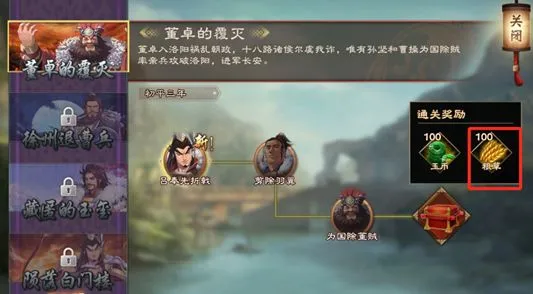 建议:肝肝肝!所有粮草获取方式一个也不能错过!主线跟着等级推,17级前通过平乱、决斗副本升级,17级后,所有的粮草全部用来刷征战副本,鉴于征战副本失败不返还粮草,可以刷17级征战副本到20级,然后一直刷20级征战副本平原直升33级,再刷33级副本直到冲级榜活动结束、或满级60级,征战副本会提供客观的玉币及各类资源产出,因为粮草分配而缺失的资源,需通过玉币购买获取