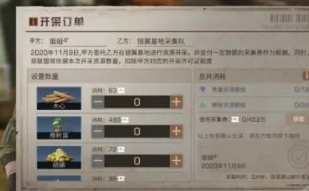 找到采集队后即可向采集队员,支付采集券来下达开采订单,同时消耗对应等级开采许可证的额度,采集队会在一定时间后,将资源邮寄到幸存者的邮箱。