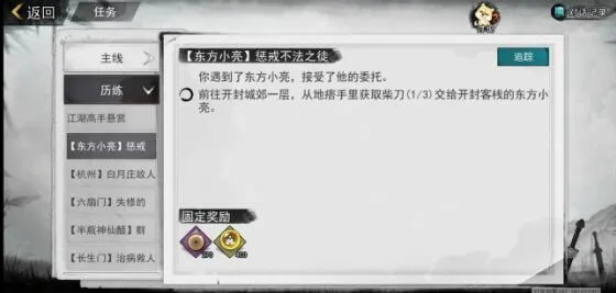 我的侠客东方小亮任务惩戒不法之徒攻略