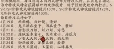 1. 活动每天会有不同稀有度的3个特攻式神,sp/ssr/sr/r等,获得不同的攻防提升。