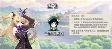 温迪,大范围聚怪,圣遗物方面推荐使用风套,能够降低敌人的抗性,对输出的提升非常的大。武器方面选取较多,这边不太方便展开,之前有做过温迪的攻略,视频简介里会给出链接,有需要的话可以去看一下。