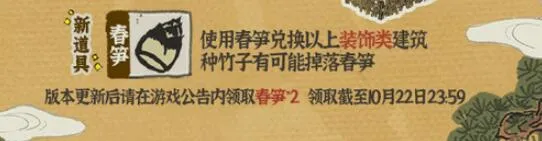 1、在杭州放竹林,竹笋是概率掉落的春笋,收集竹片的时候几率掉落春笋。