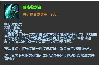 暗夜收割者无疑是AP类神话装备中爆发伤害最高的存在,除了暗夜收割者,阿卡丽的秒人能力直线上升。而且造成伤害后还会有移动速度加成,这对阿卡丽入场后调整站位也很有帮助。
