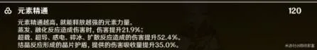 阿贝多天赋加125点精通,这里选120点做例子,可以看到融化加21.9%,扩散可以加52.4%