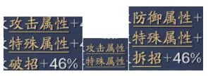 由于琅纹孔的搭配不一样攻击总共有3种,防御也是3种,所产生的属性加成也不一样。