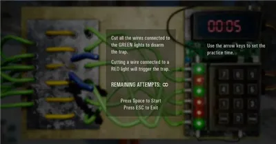 当我们顺着绿灯相连的线找到它的断点(黄线)时,在断点上分左键单击即可将其剪断,成功则继续拆除剩余的线,直到在倒计时内3根与绿灯相连的线全部拆除,便可成功拆弹。如中途剪断与红灯相连的线,则前功尽弃,轻则重来一遍,重则重生一遍。