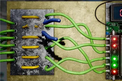 按下空格键后,说明消失,同时倒计时开始,我们需要确定与绿灯相连的线是哪些,然后在最短时间内将其剪断,那如何去找与绿灯相连的线呢,下图中,剪线钳所处的位置是其中一条与绿灯相连的线的起始点,我们需要顺着绿灯起始点找到相连的线的断点。