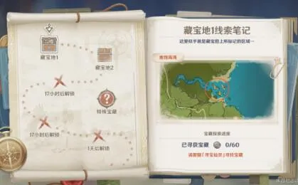 解锁当前藏宝地后才能开启下一个藏宝地图。笔记中会给出宝藏的大概位置与范围。