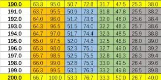 各位朋友,下图是我算的转向陀螺仪灵敏度对应的倍镜灵敏度: