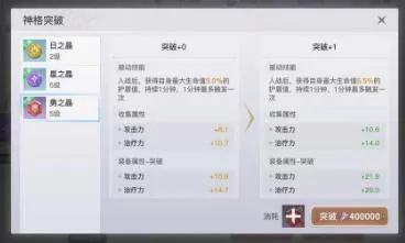 神格可以使用同类的碎片进行突破,每突破一层都会加收集属性以及装备属性。