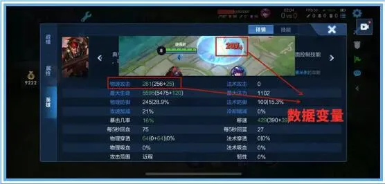 我们将典韦的等级从之前的4级提升到8级,这样做之后,典韦的物攻提升到了281,在这样的前提下,buff的额外伤害提升到了207(原伤害约为218)。