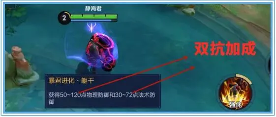 同样的道理也适用于暗影暴君(暗影暴君buff物抗加成是100~240,法抗加成是60~144,效果翻倍)。