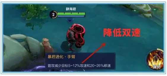 小结:手臂进化可以让己方英雄获得普攻降低目标双速的效果。